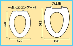 お相撲さん専用のトイレは、普通のトイレより幅は5cm、長さは7cm大きく作られています。